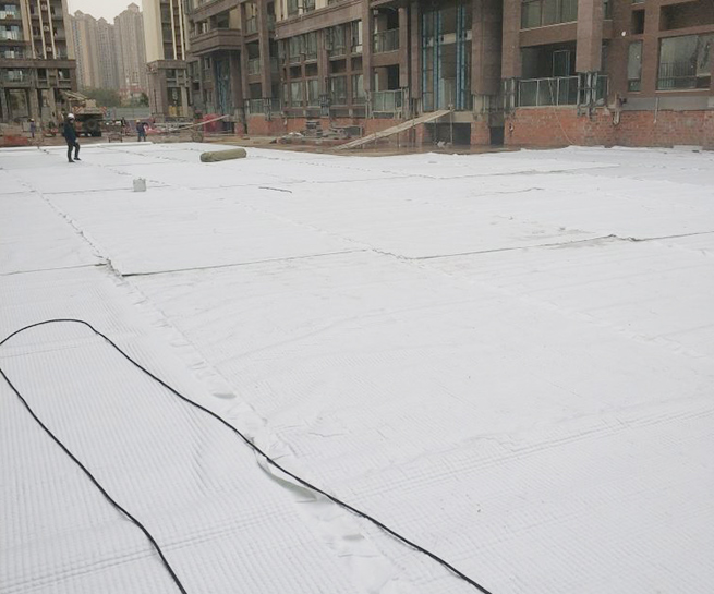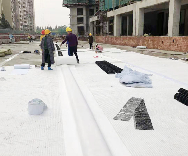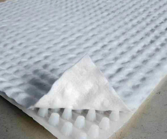 高分子防護(hù)排水異型片自粘土工布卷材是由高密度聚乙烯(HDPE)純白原料,在熔融狀態(tài)下經(jīng)真空吸塑一次成型制成,制造出的單向連續(xù)密閉殼體型凸起的板狀材料,形成一種膜、殼連接,具有立+體排水空間和一定支撐剛度,液體、氣體可以在其內(nèi)流動(dòng)的防護(hù)排水卷材。
